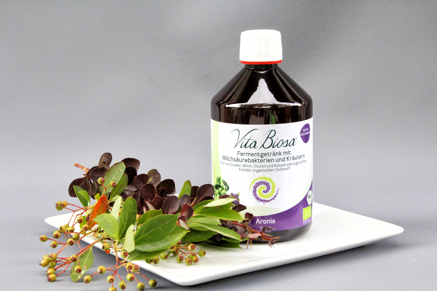 - Vita Biosa Aronia in the practical 500ml bottle. It is the original formulation with its basis of 19 different herbs and 8 different cultures of lactic acid bacteria, and with no flavourings added.