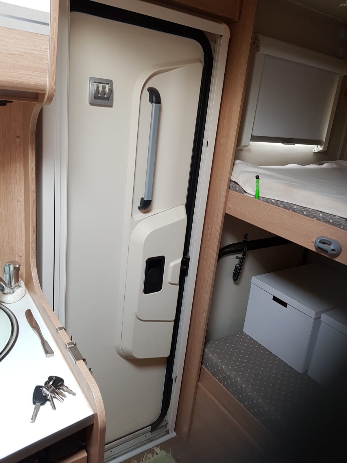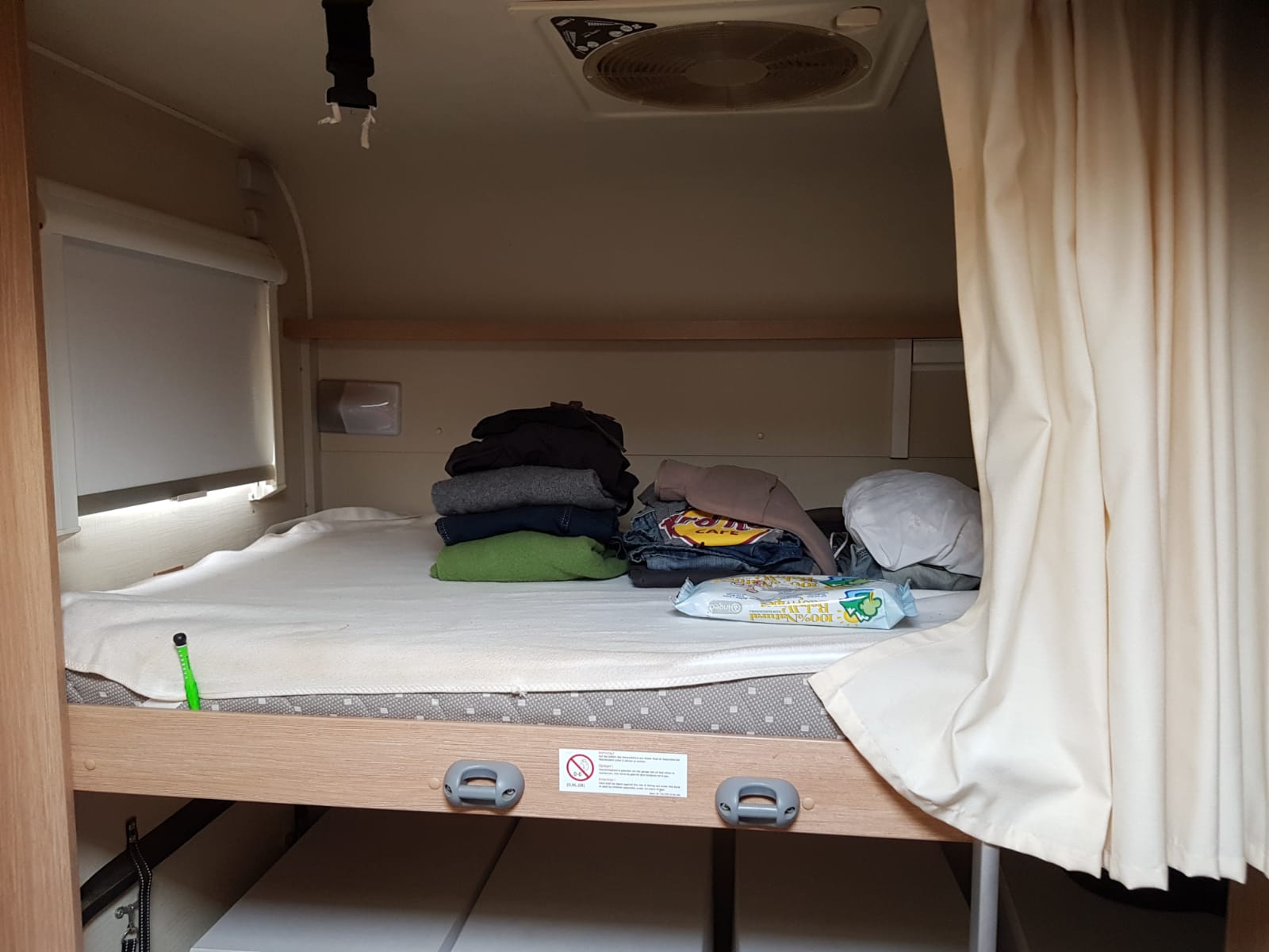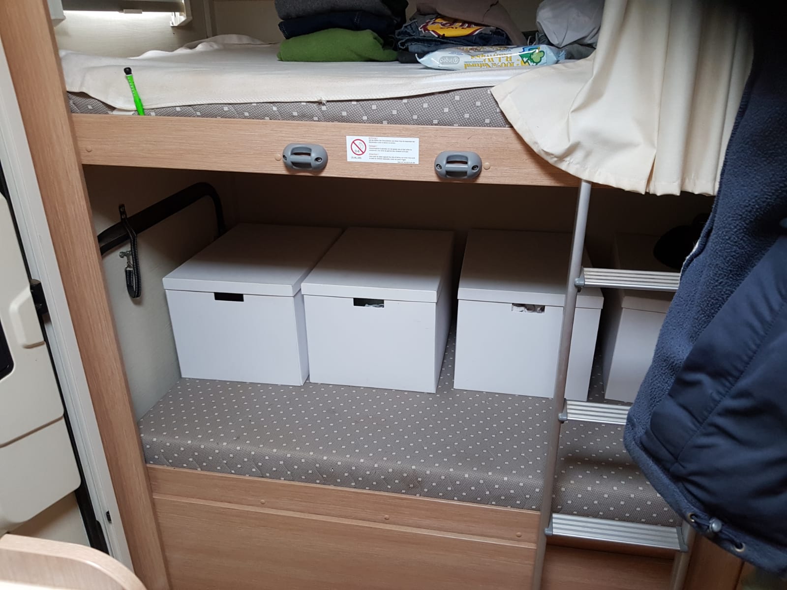 - Alkovenbett, Etagenbett und Sitzgruppe zu Bett umbaubar (also 6 Schlafplätze)