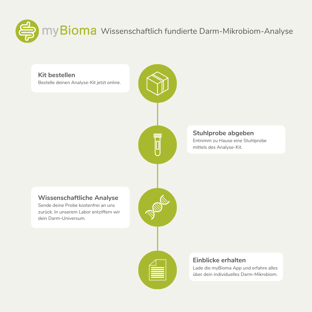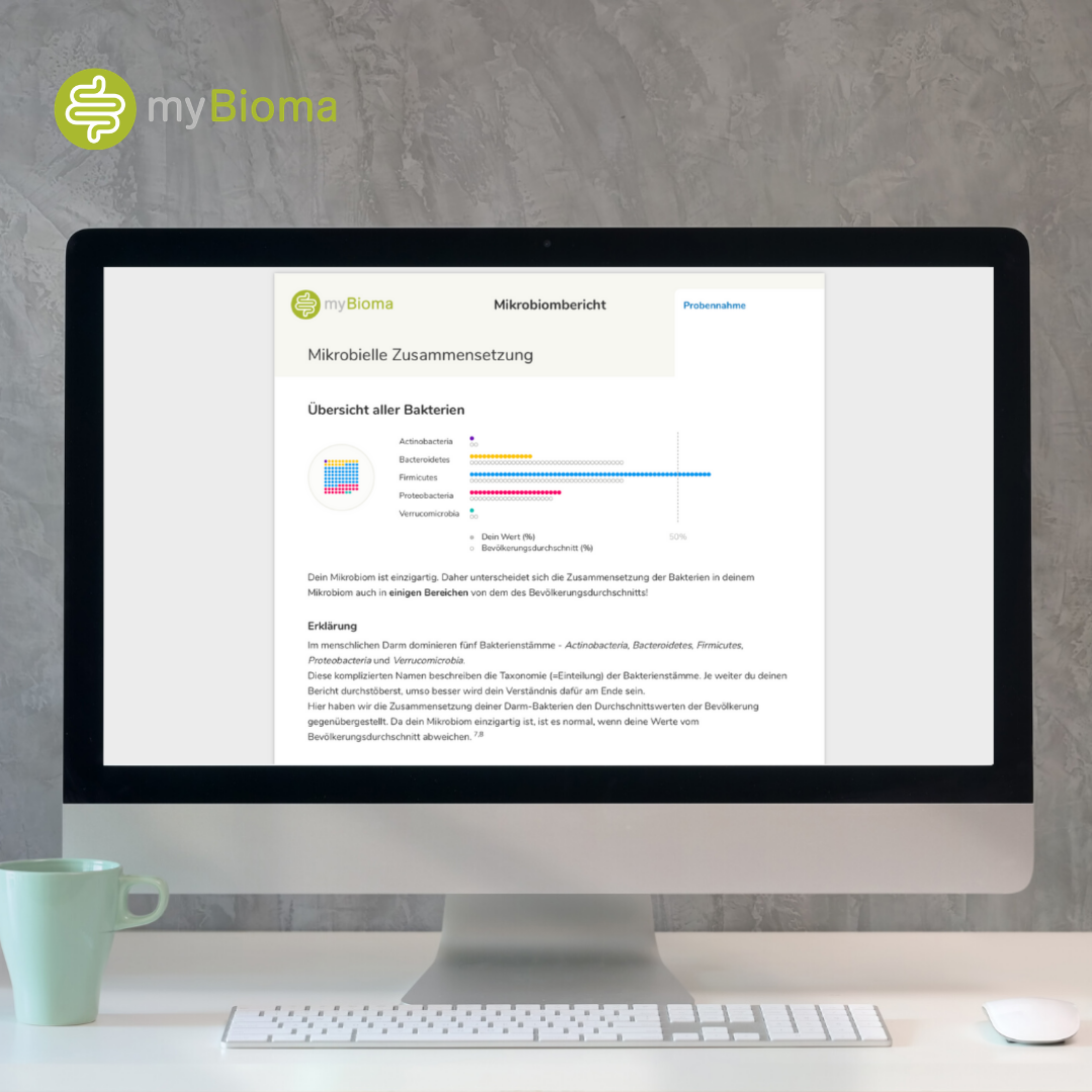 - With the myBioma microbiome analysis, you receive a comprehensive report and find out how the bacteria affect your health.